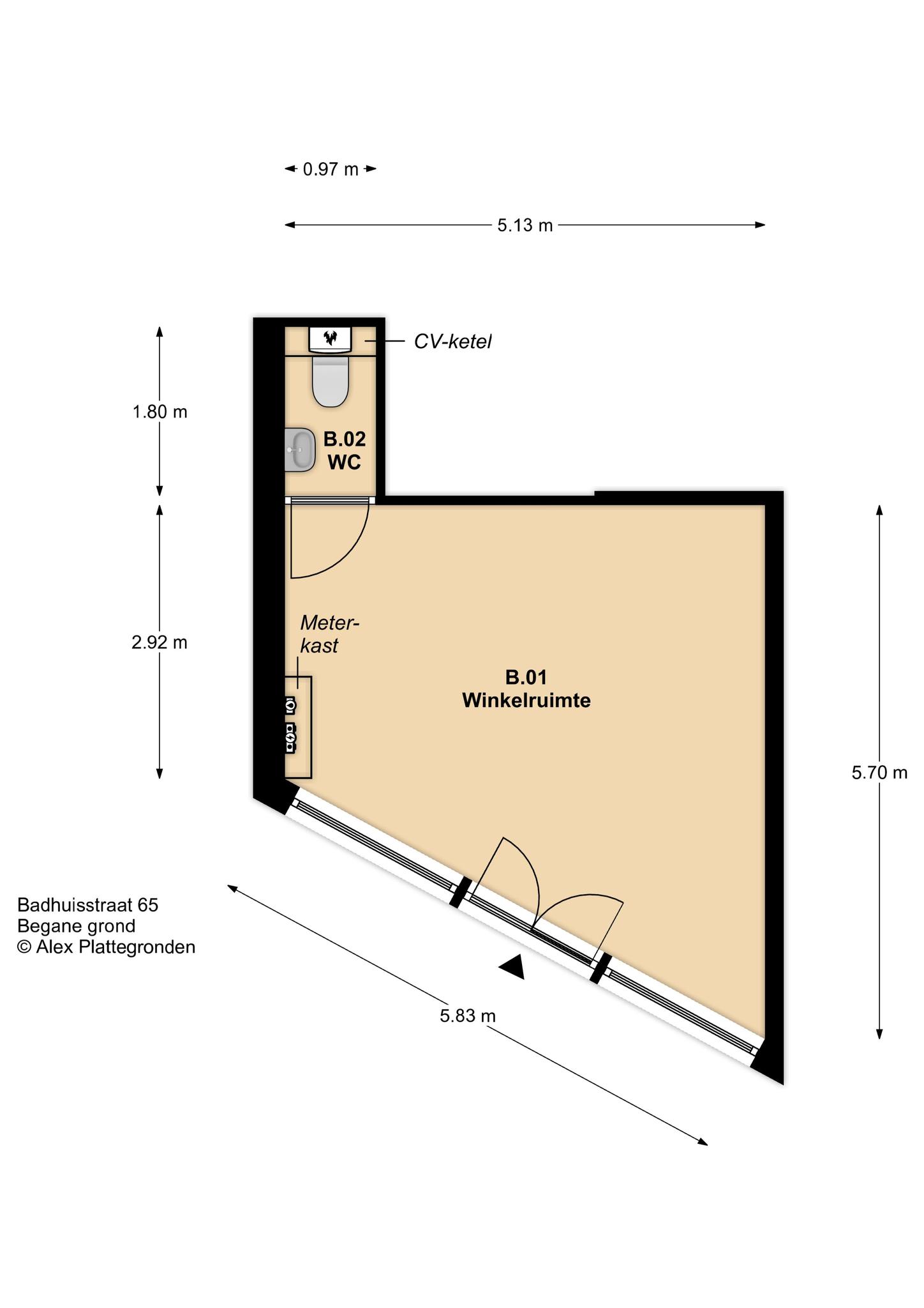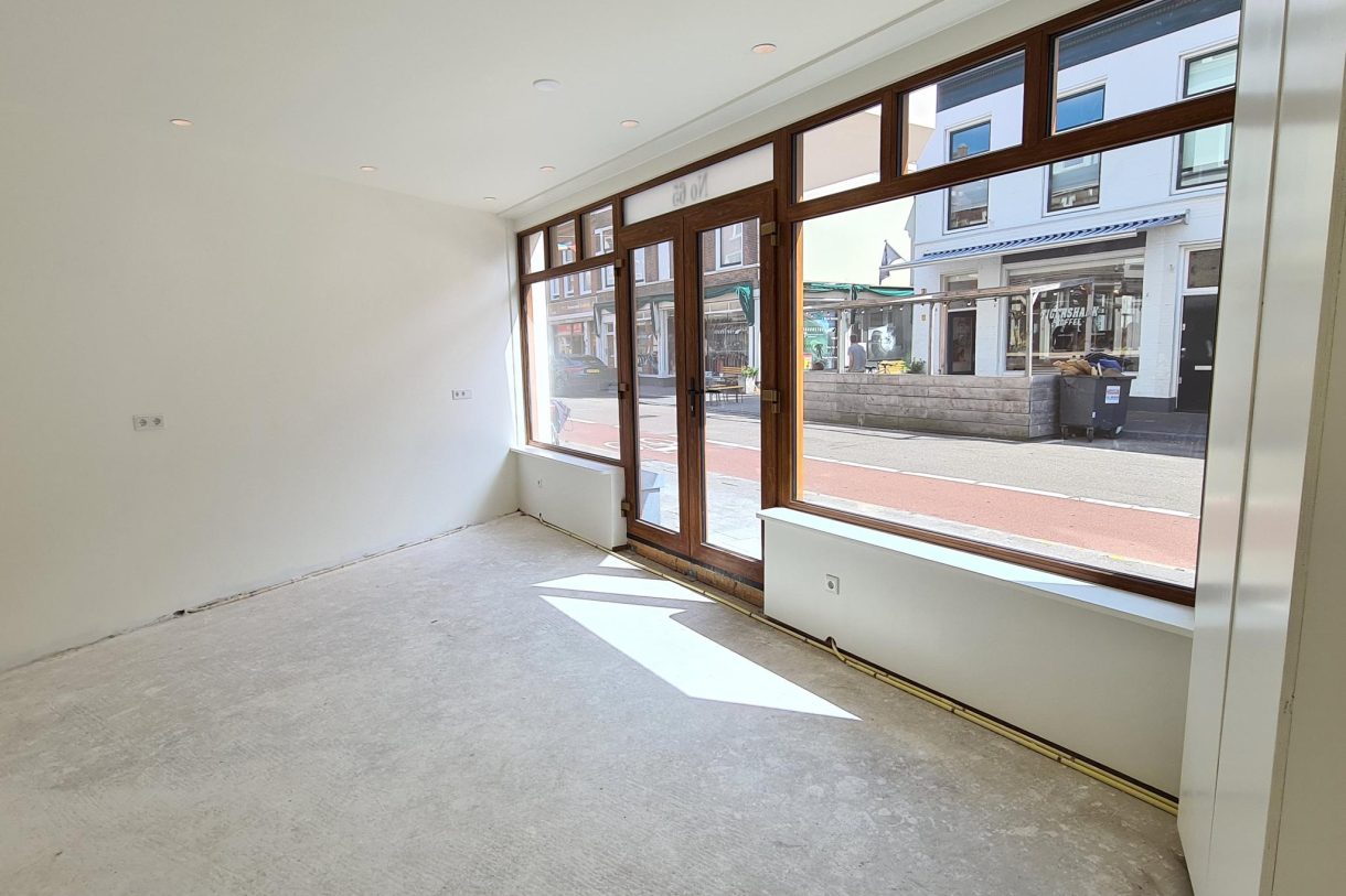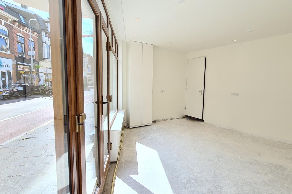 Eigen entree middels openslaande deuren, winkelruimte met gestucte wanden, gestucte plafonds met inbouwverlichting, eigen meters en eigen toilet.