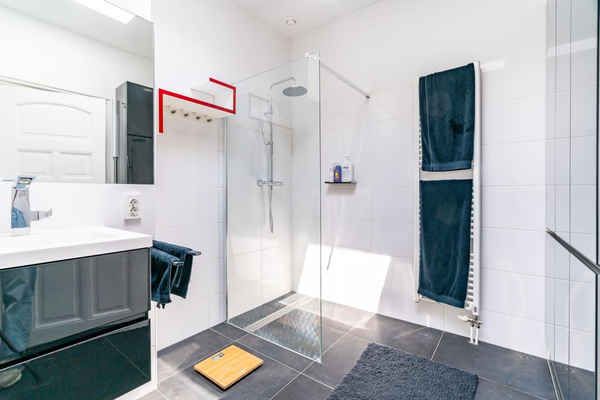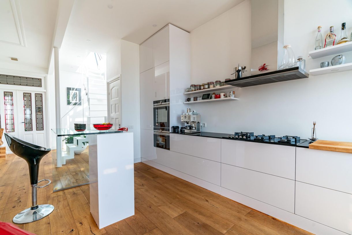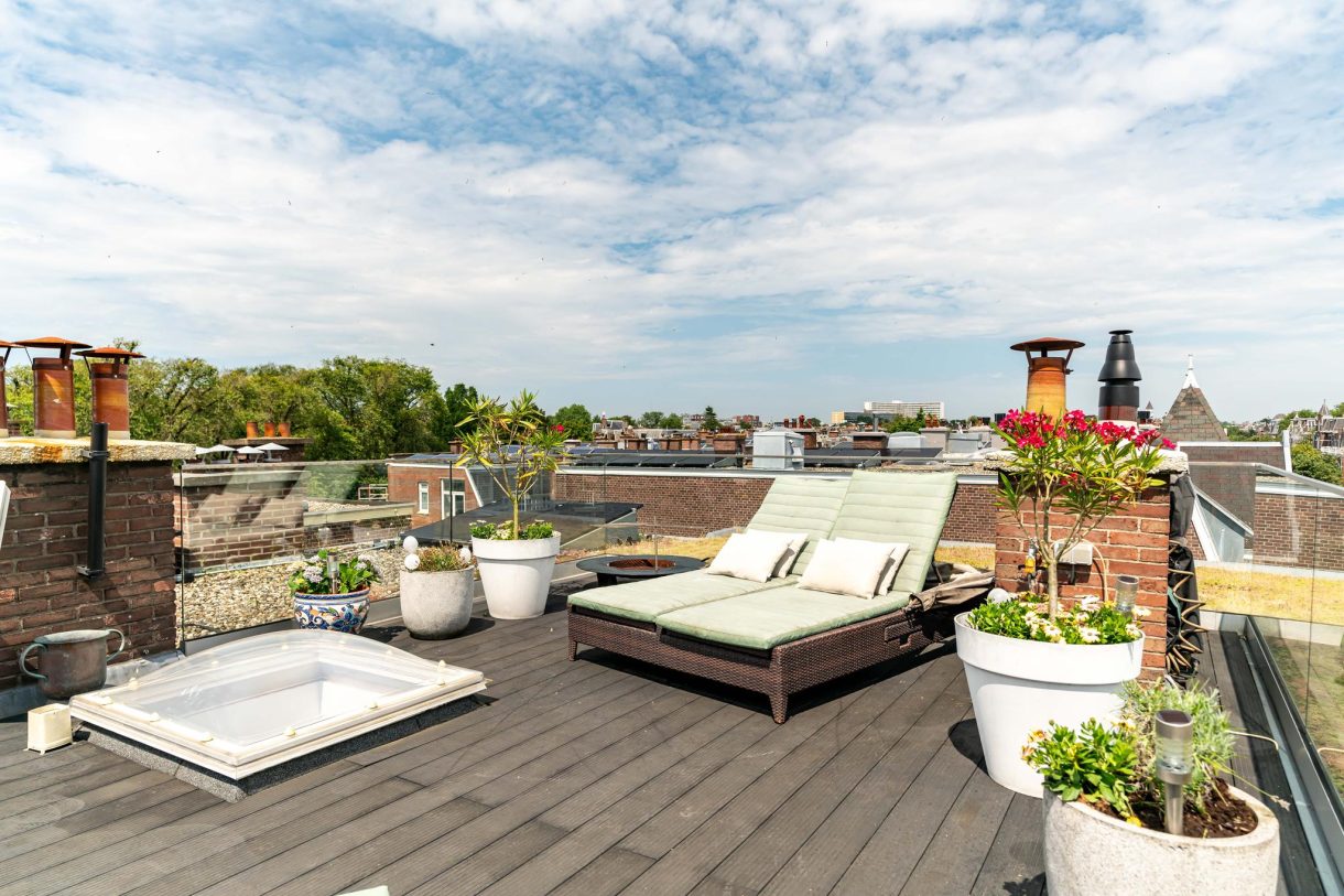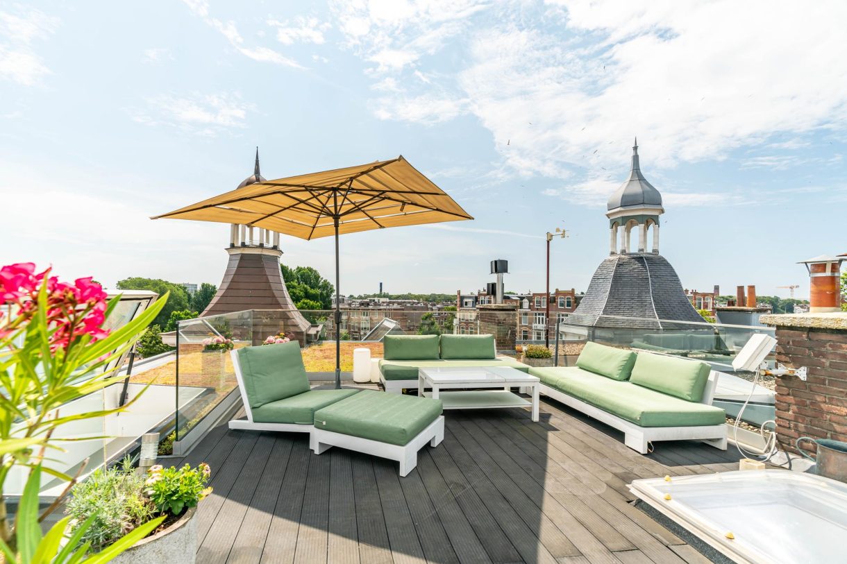 De echte eyecatcher is de zwevende trap naar het dakterras dat is voorzien van hoogwaardig dakluik, een stijlvolle glazen balustrade, composiet vlonders en wordt omringd door een groen sedum dak. Op de woonetage zijn nog twee ruime slaapkamers te vinden die rustig zijn gelegen aan de achterzijde van het gebouw waarbij de hoofdslaapkamer beschikt over een maatwerk kastenwand en openslaande deuren naar achterbalkon. De tussengelegen badkamer beschikt over fraai tegelwerk, ligbad, inbouwkast, meubel met wastafel, handdoekradiator en inloopdouche met glazen wand.