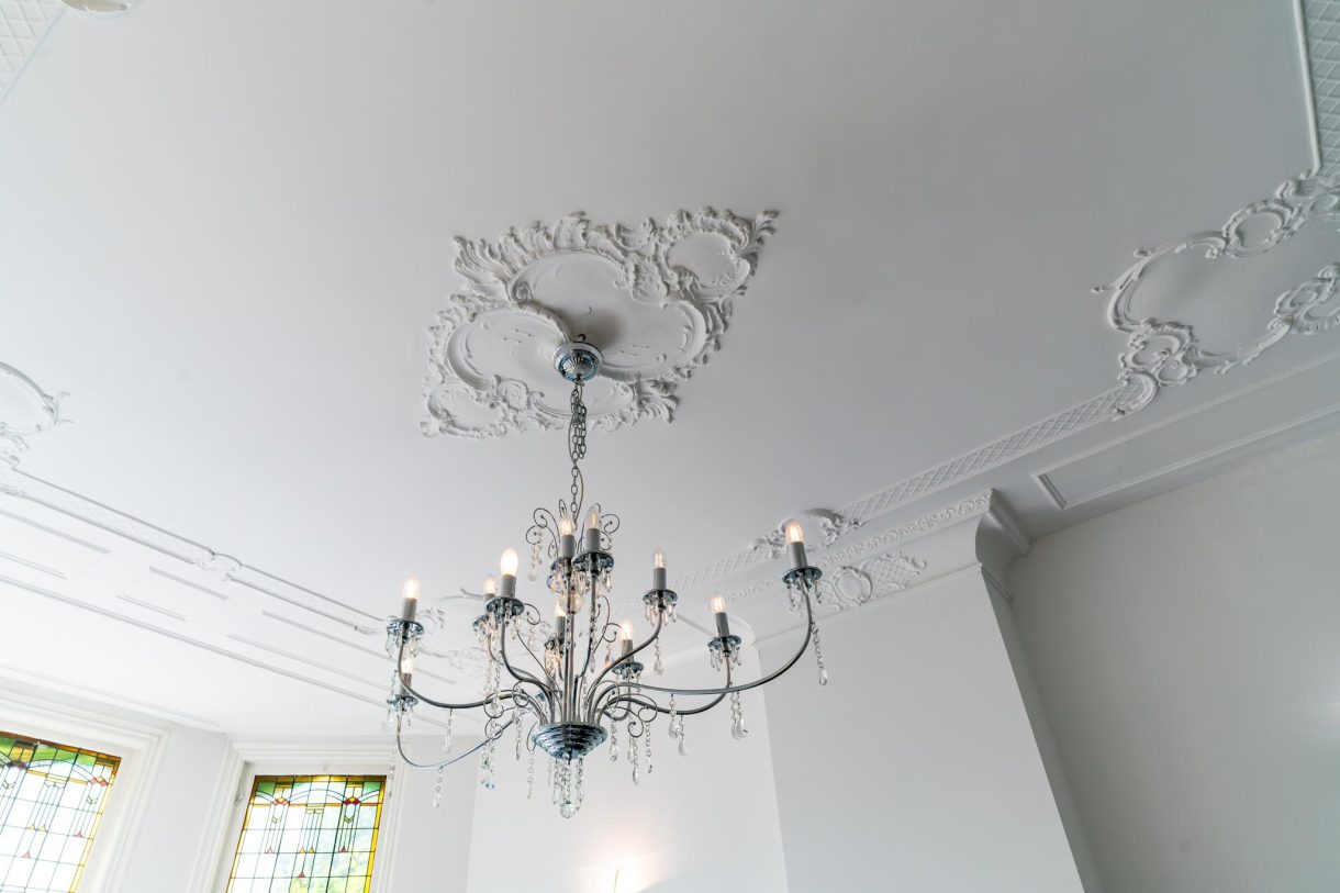 De schitterende kamers en suite beschikken over bijna 3,5 meter hoge ornamenten plafonds met wederom schitterende lichtinval, openslaande deuren aan beide zijden met originele glas in loodbovenlichten, marmeren schouwen en bijzondere suite separatie met zeer gedetailleerd houtsnijwerk.
