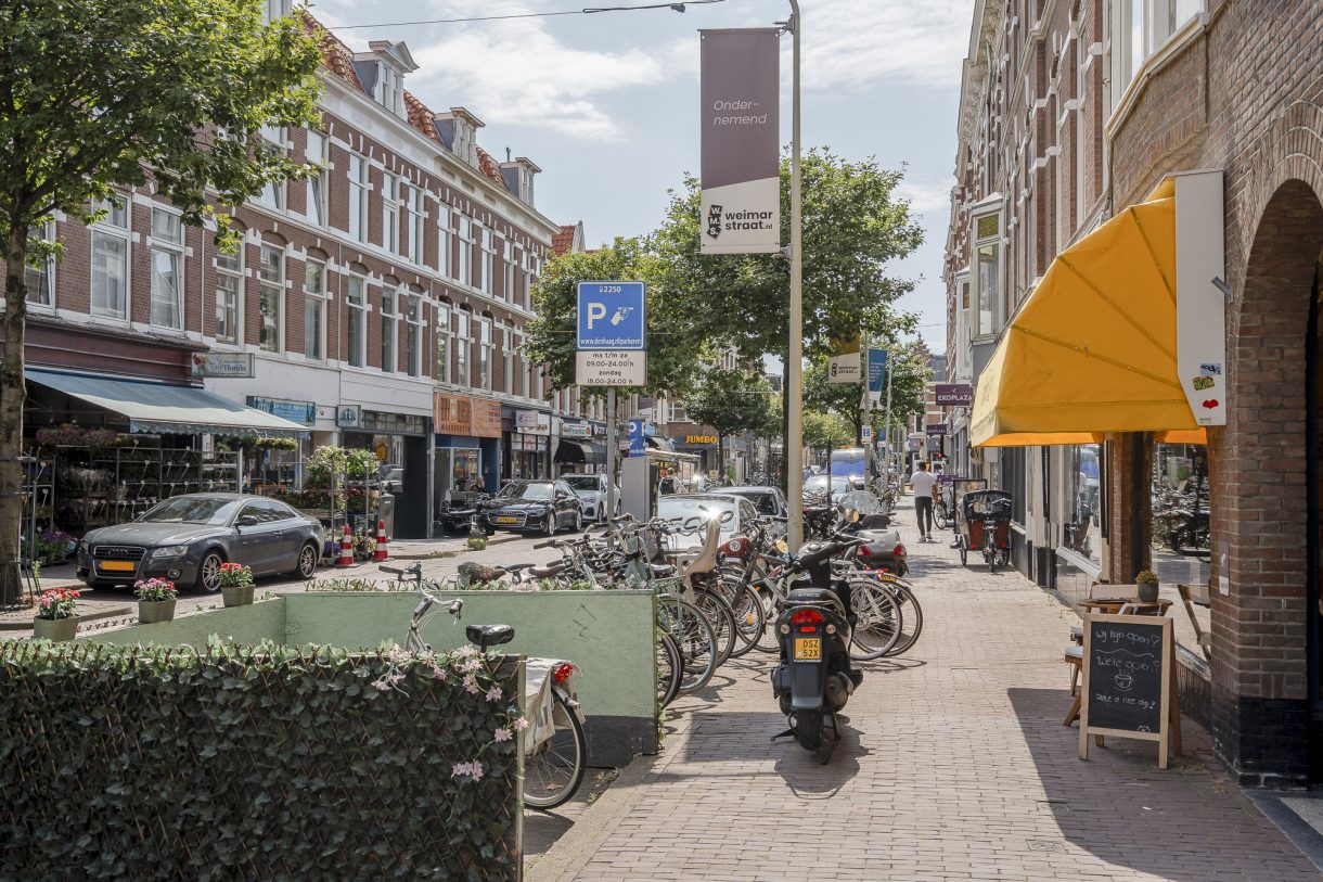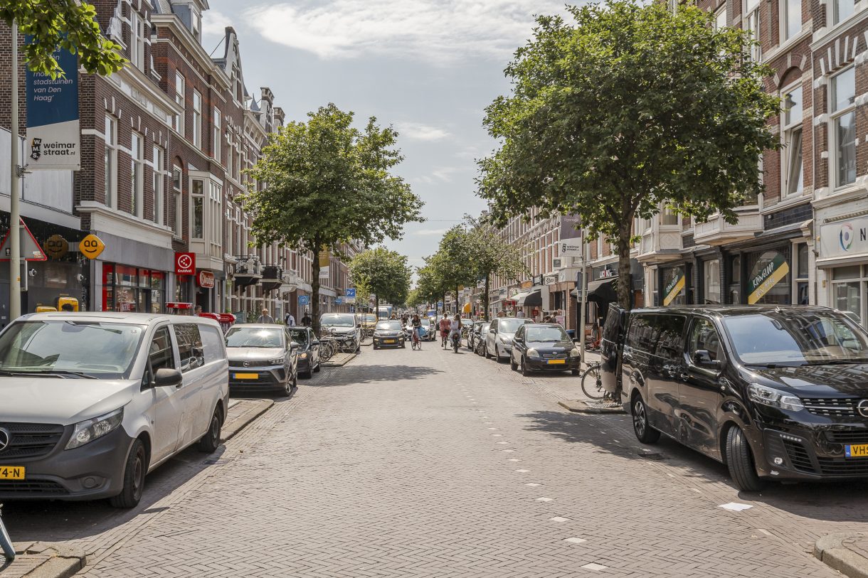 Het pand is gelegen in de bekende woon-/winkelstraat Weimerstraat rand van het Regentessekwartier en het Valkenboskwartier, een historische winkelstraat met een gevarieerd aanbod aan winkels en horecagelegenheden. Naast een grote keten zoals Albert Heijn, vlakbij de Jumbo, voorts vind je er diverse speciaalzaken en lokale ondernemers.