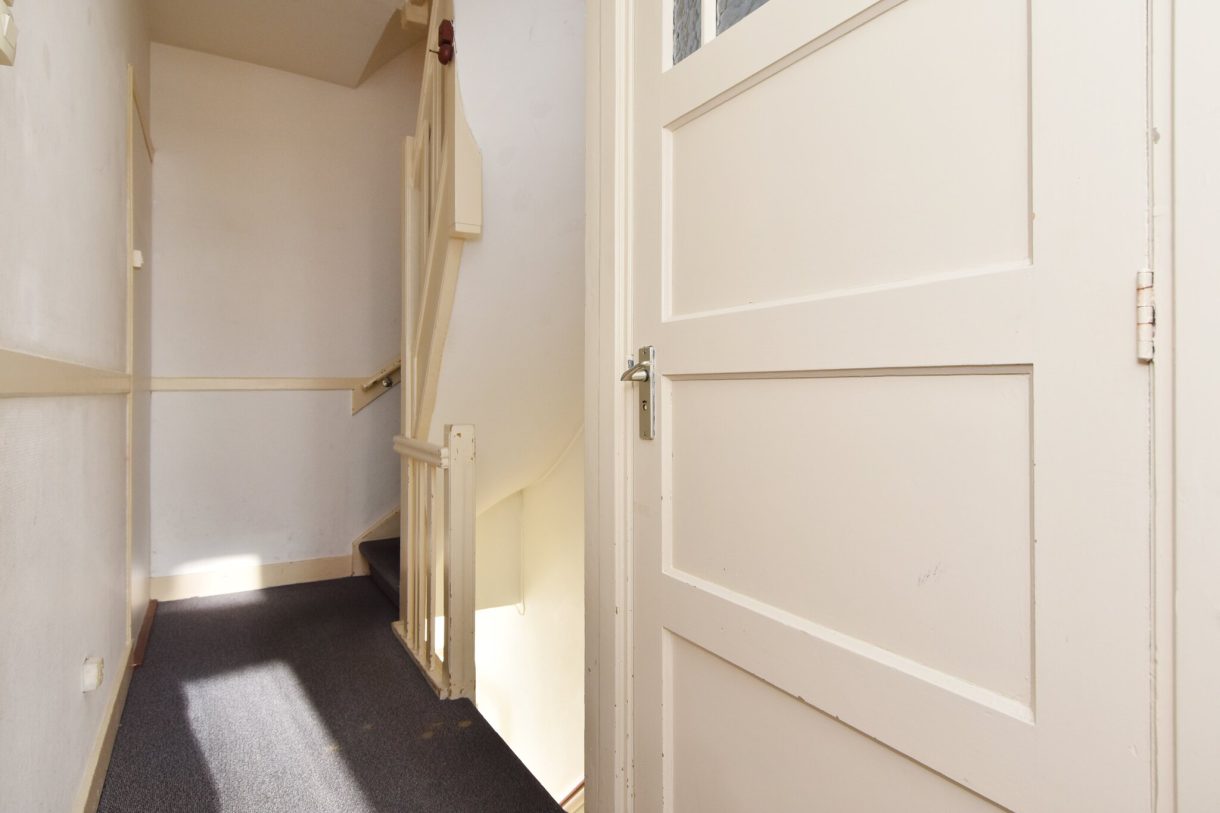 Ruim 3-laags bovenhuis met een woonoppervlak van ca. 135 m² met ondergelegen bedrijfsruimte cq garage van ca. 102 m², zonneterras ca. 13 m² op de middagzon aansluitend aan de living, keuken, 4 ruime slaapkamers, badkamer, 2 toiletten en waskamer.