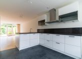 Entree, vestibule met deur naar hal, toilet met fonteintje. De woon/eetkamer 6.86/40.67×5.39 is voorzien van parketvloer en een grote bergkast, tiegang tot de heerlijke achtertuin met 2 terrassen en een schuur. De ruime woonkeuken is volledig voorzien van een nieuwe luxe inrichting met inbouwapparatuur en veel opbergruimte.