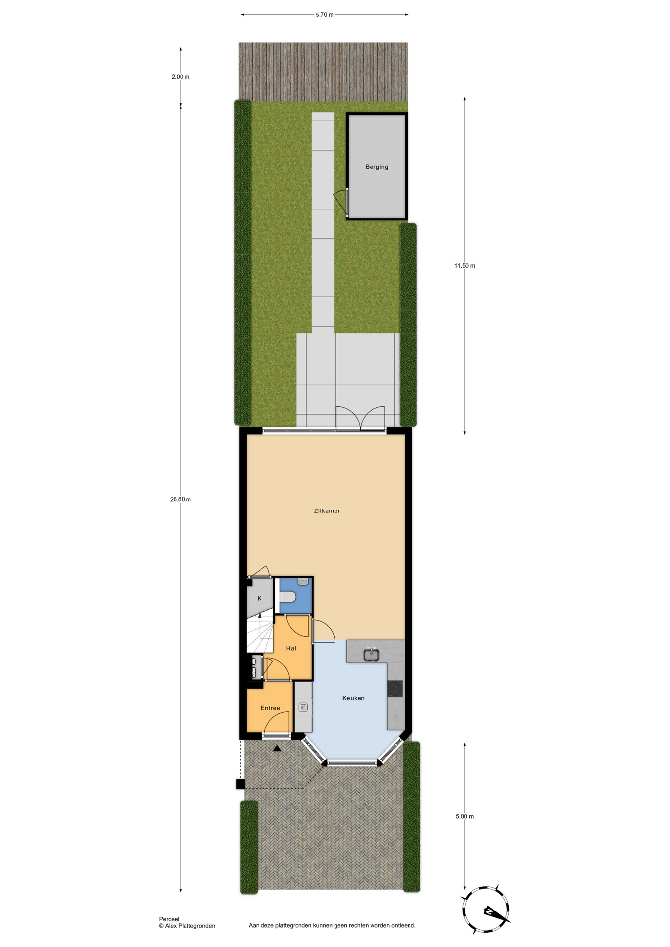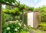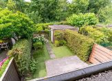 De woning heeft zowel een voortuin als een achtertuin op het ZW met achterom.