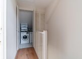 Op de 2e verdieping een overloop meyteen ruimte met cv-ketel, wasmachine en droger, een moderne badkamer met douche, toilet en badmeubel met wastafel, een zeer ruime slaapkamer 5.00×3.56 met dakkapel en een inloopkast. De ruimtes onder de schuine dakdelen zorgen voor veel bergruimte.