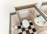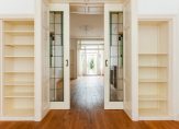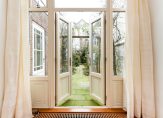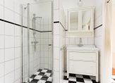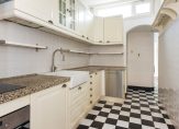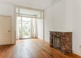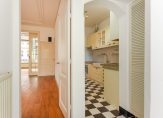 Entree, vestibule, deur naar hal, bergkast, toilet met fonteintje, kamers en suite ca. 12.45×3.67/2.26 met houten vloeren, marmeren schoorsteenmantels, suite separatie met schuifdeuren met glas-in-lood en vaste kasten, openslaande deuren naar achtertuin. Nette keuken ca. 3.43×2.03 met alle inbouwapparatuur, was-stookruimte, badkamer ca. 2.70×1.90 met ligbad, separate douche, wastafelmeubel, handdoek radiator, grote slaapkamer 4.01×2.85 met ingebouwde kasten en openslaande deuren naar de tuin, ruime 2e slaapkamer 3.20×2.90.