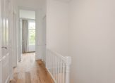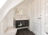 Trap naar 3e verdieping, grote open ruimte ca. 5.37×3.10, ideaal als studeerkamer, logeerkamer, speel- of tv-kamer, toegang tot de 2e badkamer met douche, toilet en badmeubel met wastafel, voorslaapkamer ca. 3.72×3.10 en berging ca. 5.13×1.81/1.05.