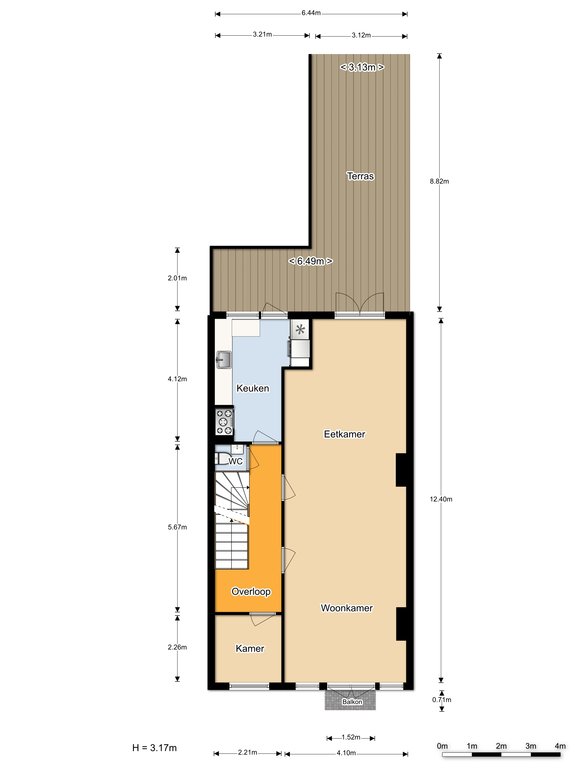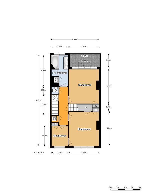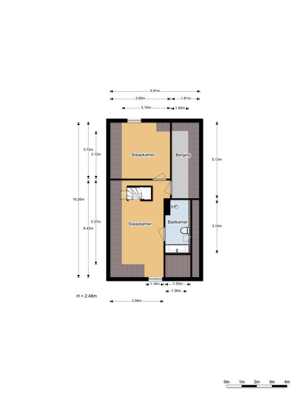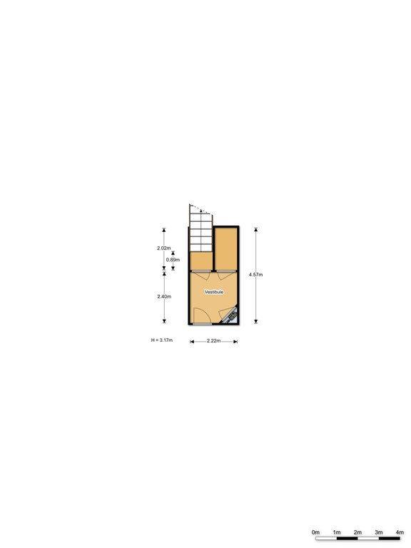 Entree op begane grond niveau ruime hal ca. 40×2.22 en berging ca. 2.02×1.10.
