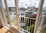 Vanuit de hal de trap naar de 1e etage, overloop voorzien van technische ruimte met cv-ketel en opstelplaats voor de wasmachine, zijkamer aan de voorzijde, zijkamer aan de achterzijde, riante slaapkamer aan de achterzijde met balkon over de volle breedte op de ochtend- en middagzon, riante slaapkamer aan de voorzijde met erker en tussen gelegen badkamer voorzien van inloopdouche met glazen wand, badkamermeubel met onderkasten, wandcloset en ligbad.
