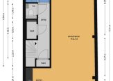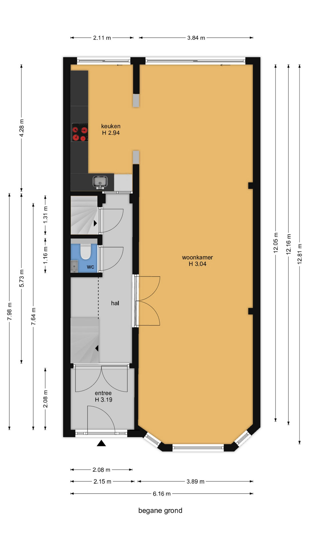 Ruime voortuin, entree met vestibule, tochtdeur met glasroedeverdeling naar de gang met toilet en deur naar kelder. De kelder is voorzien van veel bergruimte, meterkast en sauna. De begane grond is voorzien van lamelparketvloeren, erker aan de voorzijde, schuifpui naar de achtertuin met stenen berging en open keuken voorzien van composiet werkblad, koelkast, combimagnetron, inductiekookplaat en vaatwasser.