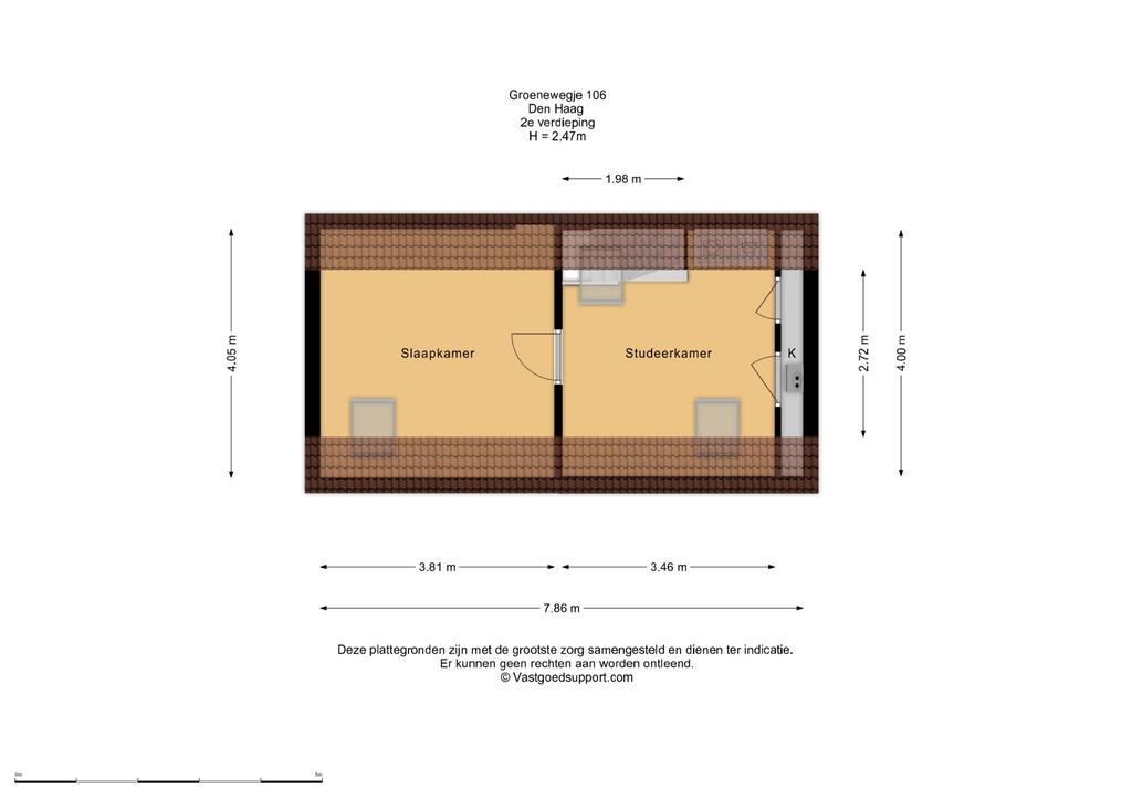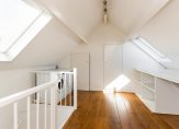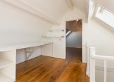 Trap naar 2e etage, open ruimte/werkkamer 3.45×2.72 met bergruimte, slaapkamer 3.81×2.72.
