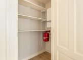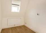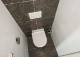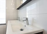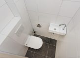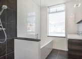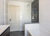 Trap naar 2e etage, overloop, toilet met fontein, kast met opstelplaats voor wasmachine en droger, ruime achterslaapkamer met openslaande deuren naar balkon over de volle breedte, ruime voorslaapkamer met bergkast, voorzijkamer. Tenslotte een moderne luxe badkamer voorzien van ligbad, separate douche en wastafelmeubel.
