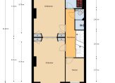 Entree, halletje, trap naar 1e etage, overloop, toilet en doucheruimte, fraaie kamers en suite met erker, separatie met glas-in-lood schuifdeuren en 4 vaste kasten, nieuwe fraaie pvc-vloer, luxe nieuwe keuken met inbouwapparatuur en fornuis met inductiekookplaat, de keuken is zowel vanuit de gang als vanuit de woonkamer bereikbaar, voorzijkamer.