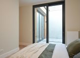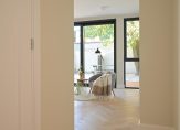 Gezamenlijke entree van het gebouw, entree appartement, hal met fraaie visgraat parketvloer en schitterende lichtstraat, twee rustig gelegen slaapkamers zonder bovenburen grenzend aan een patio met gunstige lichtinval, riante woonkamer aan de achterzijde die grenst aan de tuin die op het zuidoosten is gelegen. Vrij uniek is dat deze achtertuin veel privacy heeft en beschikt over een achterom. De woonkamer beschikt over alle aansluitingen zodat de koper naar eigen wens een keuken kan laten installeren. Voor de tussengelegen badkamer geldt hetzelfde als de keuken en deze kan naar eigen wens van de koper worden geïnstalleerd.