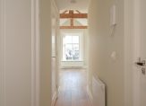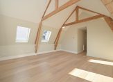 Gezamenlijke entree van het gebouw, trap naar 2e etage, entree appartement, slaapkamer, hal, een badkamer die net als de keuken naar eigen wens kan worden geplaatst. Aan de achterzijde de riante woonkamer met nokhoogte van ca. 3,74 meter en kapconstructie in het zicht.