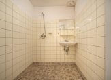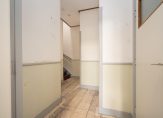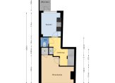 Overheaddeur naar bedrijfsruimte opgedeeld in twee ruimtes met deur naar beschut achtertuintje, aparte entree van de woning op straatniveau, trap naar de eerste etage, overloop met toilet, woonkamer aan de voorzijde met uitzicht over de gracht, eetkeuken aan de achterzijde met deur naar aan te leggen balkon. Voorts trap naar de tweede etage, overloop met daklicht, ruime slaapkamer aan de voorzijde met glas in lood bovenlichten, tweede goed formaat slaapkamer gelegen aan de achterzijde en tussengelegen badkamer voorzien van eenvoudig tegelwerk, douche en wastafel.