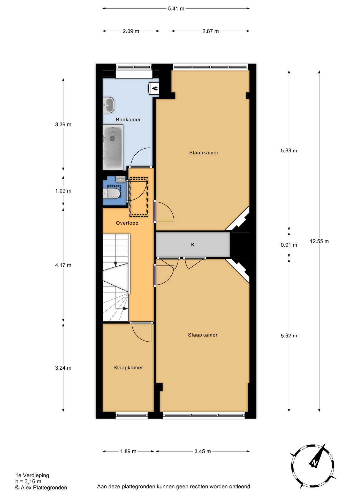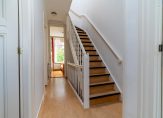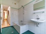 Trap naar 1e etage, overloop, toilet met fonteintje, ruime badkamer met ligbad/douche en vaste wastafel, vloerverwarming en opstelplaats CV-ketel, zeer ruime achterslaapkamer, eveneens ruime voorslaapkamer met grote inbouwkast, voorzijkamer.