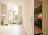 Charmante 3-kamer parterre van ca. 50 m² woonoppervlak verdeeld over woonkamer met zeer gunstige lichtinval en hoge plafonds, nieuwe half open keuken met inbouwapparatuur, moderne badkamer en twee ruime slaapkamers. Deze stijlvolle woning beschikt bovendien over een gezellige L-vormige achtertuin gelegen op het zonnige zuid/zuidoosten.