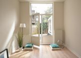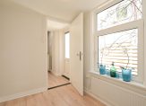 Eigen entree, hal met diepe trapkast, apart toilet met wandcloset en vaste kast met cv-ketel, woonkamer aan de voorzijde met grote raampartijen en hoog plafond, nieuwe half open keuken voorzien van inbouwoven, magnetron, koelkast en 4-pits inductiekookplaat. De ruime slaapkamer is rustig gelegen aan de achterzijde en heeft openslaande deuren naar L-vormige achtertuin die bijna pal op het zuiden is gelegen. In de uitbouw nog een slaapkamer die aan de tuin grenst en een moderne badkamer voorzien van fraai tegelwerk, meubel met wastafel en inloopdouche.