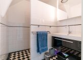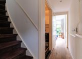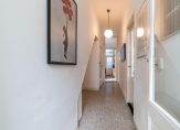 Entree, vestibule met tochtdeur naar de gang voorzien van een prachtige, recent gerestaureerde, terrazzo vloer, diverse kasten en een toilet met fontein.