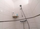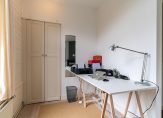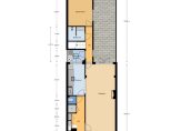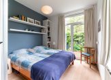 Vanuit de woonkamer leidt een gang naar de uitbouw met op de begane grond een badkamer voorzien van wastafelmeubel en inloopdouche alsmede een ruime slaapkamer met deur naar de achtertuin. Trap naar 1e etage met een ruime kamer met vaste kast. Oorspronkelijk waren dit 2 kamers wat indien gewenst ook weer te realiseren is.