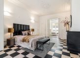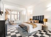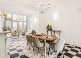 De schitterende kamers en suite beschikken over bijna 3,5 meter hoge ornamenten plafonds met wederom schitterende lichtinval, openslaande deuren aan beide zijden met originele glas in loodbovenlichten, marmeren schouwen en bijzondere suite separatie met zeer gedetailleerd houtsnijwerk.