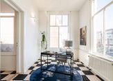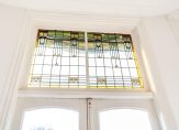 Vanuit de ontvangstruimte een brede trap naar de eerste etage, overloop met apart toilet en pantry, zijkamer aan de voorzijde met ramen aan tweede zijden dankzij ligging op de hoek. Hetzelfde geldt voor de zijkamer aan de achterzijde die tevens goed van formaat is. Vrij uniek voor Statenkwartier herenhuizen is dat de suiteseparatie op de eerste etage intact is gebleven en nog is voorzien van schuifdeuren en vaste kasten. Op deze etage wordt de vrije ligging van het pand benadrukt dat in combinatie met de grote raampartijen en de hoge ornamenten plafonds resulteert in een zeer aangename sfeer.