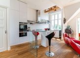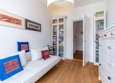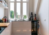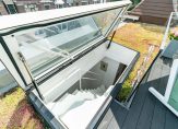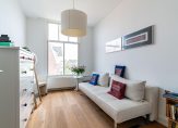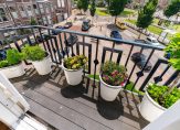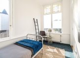 De echte eyecatcher is de zwevende trap naar het dakterras dat is voorzien van hoogwaardig dakluik, een stijlvolle glazen balustrade, composiet vlonders en wordt omringd door een groen sedum dak. Op de woonetage zijn nog twee ruime slaapkamers te vinden die rustig zijn gelegen aan de achterzijde van het gebouw waarbij de hoofdslaapkamer beschikt over een maatwerk kastenwand en openslaande deuren naar achterbalkon. De tussengelegen badkamer beschikt over fraai tegelwerk, ligbad, inbouwkast, meubel met wastafel, handdoekradiator en inloopdouche met glazen wand.