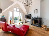 Middels een afgesloten deur is de woonetage op de tweede verdieping te bereiken met een klassiek trappenhuis en een doorgebroken woonkamer aan de zuidwestkant van dit indrukwekkende herenhuis. De woonkamer is tot aan de nok van de toren doorgebroken waarbij de originele balken een mooi contrast vormen met het strakke stucwerk. De luxe open keuken is voorzien van composiet werkblad, hoog model Siemens bakoven, inbouw stoomoven, vaatwasser, Quooker en wijnklimaatkast. Daarnaast beschikt deze woonkamer over een open haard, fraaie houten vloeren en een charmant voorbalkon met vrij uitzicht over het Statenkwartier. Tussengelegen overloop en woonkamer beschikken over vloerverwarming per CV-ketel.