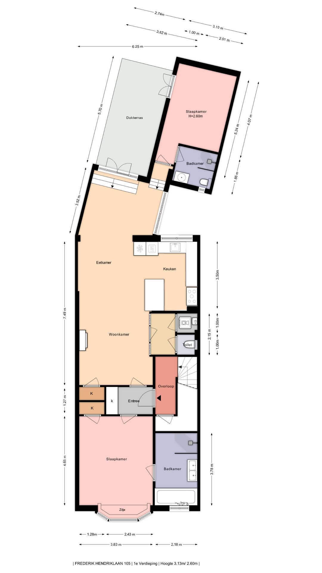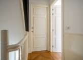 Entree op straatniveau, trap naar de eerste etage, entree appartement met ingebouwde garderobekast, tweede hal voorzien van meterkast en apart toilet voorzien van fraai tegelwerk, hangend toilet en fonteintje. Vanuit de entree een karakteristieke deur met glasroedeverdeling naar de schitterende woonkamer met ca. 3,13 hoog ornamenten plafond, gunstige lichtinval dankzij raampartijen aan diverse zijden. De luxe open keuken is voorzien van composiet werkblad, 5-pits rvs gasfornuis met brede oven, vaatwasser, espressomachine, combioven, koel-/vriescombinatie en afzuigkap. Vanuit de woonkamer het riante zonneterras dat op de middag- en avondzon is gelegen.