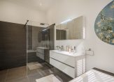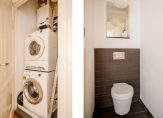 Aan de achterzijde een gang naar de tweede slaapkamer, zeer rustig gelegen aan de achterzijde en eveneens voorzien van eigen badkamer met inloopdouche, toilet en meubel met wastafel.