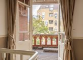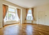 Bijzonder hoekappartement van totaal ca. 165 m² grotendeels verdeeld over één vloer met optimale privacy door vrije ligging aan drie zijden en gesitueerd achter een markante gevel van een voormalig herenhuis dat beschikt over prachtige originele stijlelementen zoals een verscheidenheid aan torens, een trapgevel, leistenen daken en gedetailleerde gevelelementen.