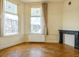 Entree met hal op straatniveau voorzien van meterkast en trap naar de eerste etage, ruime overloop voorzien van diverse vaste kasten en apart toilet met wandcloset en fonteintje, aan de voorzijde de kamers en suite met zeer gunstige lichtinval dankzij grote raampartijen en ligging op de hoek, erker aan de voorzijde met leuk uitzicht over een herkenbaar punt van het Statenkwartier, suiteseparatie met schuifdeuren en vaste kasten aan beide zijden, glas in lood bovenlichten, natuurstenen schouwen, visgraat parketvloer en serre aan de achterzijde.