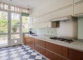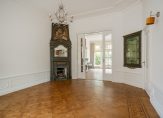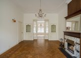 De voorkamer van de kamers en suite is voorzien van een fraai geornamenteerd plafond, een erker met glas-in-lood bovenlichten, fraaie radiatoromkastingen, een parketvoer met band en bies en een gas open haard in een schoorsteenmantel met klassieke beschilderingen. De schuifdeuren met glasroedeverdeling leiden naar de achterkamer van de kamers en suite die eveneens is voorzien van een fraai geornamenteerd plafond en een parketvloer daarnaast 2 ingebouwde kasten, een open haard in een klassieke schoorsteenmantel met authentieke koud gezette siertegels en houten lambrisering, openslaande deuren met gebrandschilderde ramen naar de ruime zonnige en fraai aangelegde achtertuin met kleine waterpartij. De zeer ruime keuken met eethoek is voorzien van alle inbouwapparatuur, de keuken heeft eveneens openslaande tuindeuren en glas-in-lood bovenlichten.
