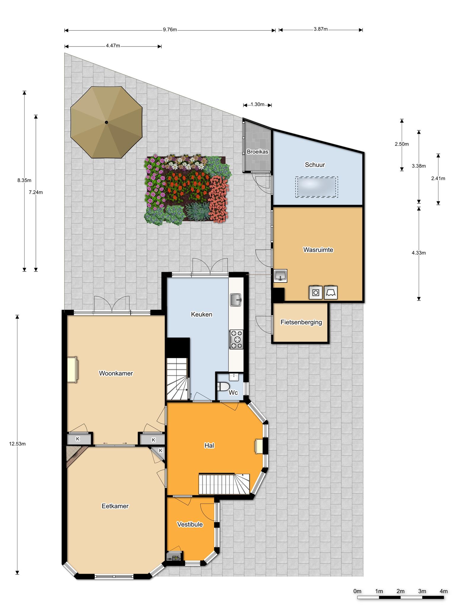 De voormalige garage is omgebouwd tot een grote verwarmde wasruimte, daarnaast is er nog een aparte fietsenberging en een grote schuur met daklicht.