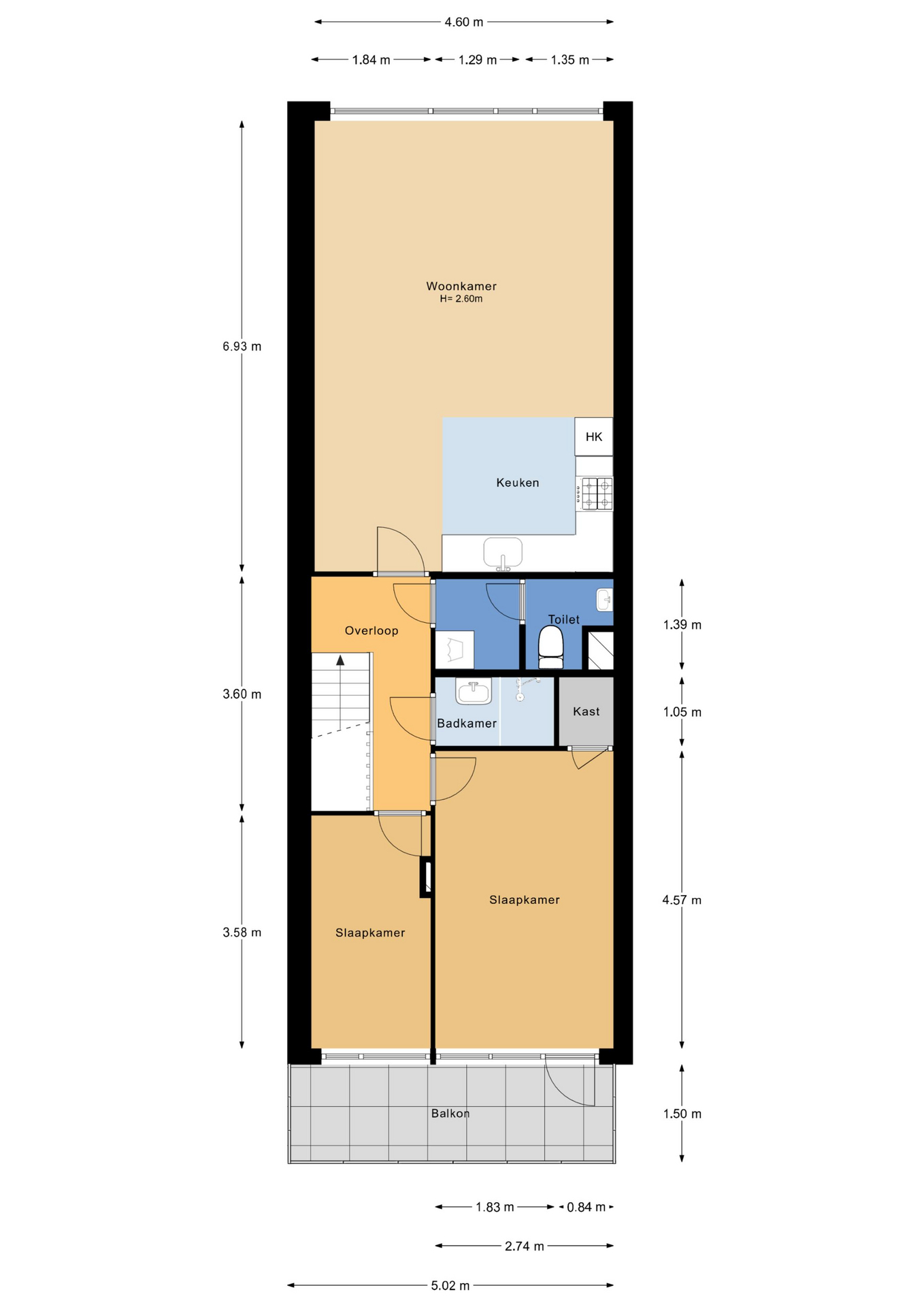 Eigen entree op straatniveau, garage met elektrische overheaddeur, binnendeur naar hal met meterkast, trap naar de eerste etage, overloop met deur naar de woonkamer met mooie breedte maat, gunstige lichtinval en open keuken in hoekopstelling voorzien van 4-pits gaskookplaat, koel-/vriescombinatie en nieuwe vaatwasser. De slaapkamers zijn rustig gelegen met veel privacy en ruim van formaat, de tussengelegen badkamer is voorzien van tegelwerk, douchecabine, wastafel en spiegelkast. Tot slot de wasruimte met deur naar toilet met fonteintje.