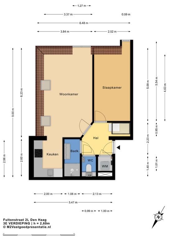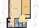 Indeling 1 slaapkamer appartement 3e verdieping met dakterras achterzijde: