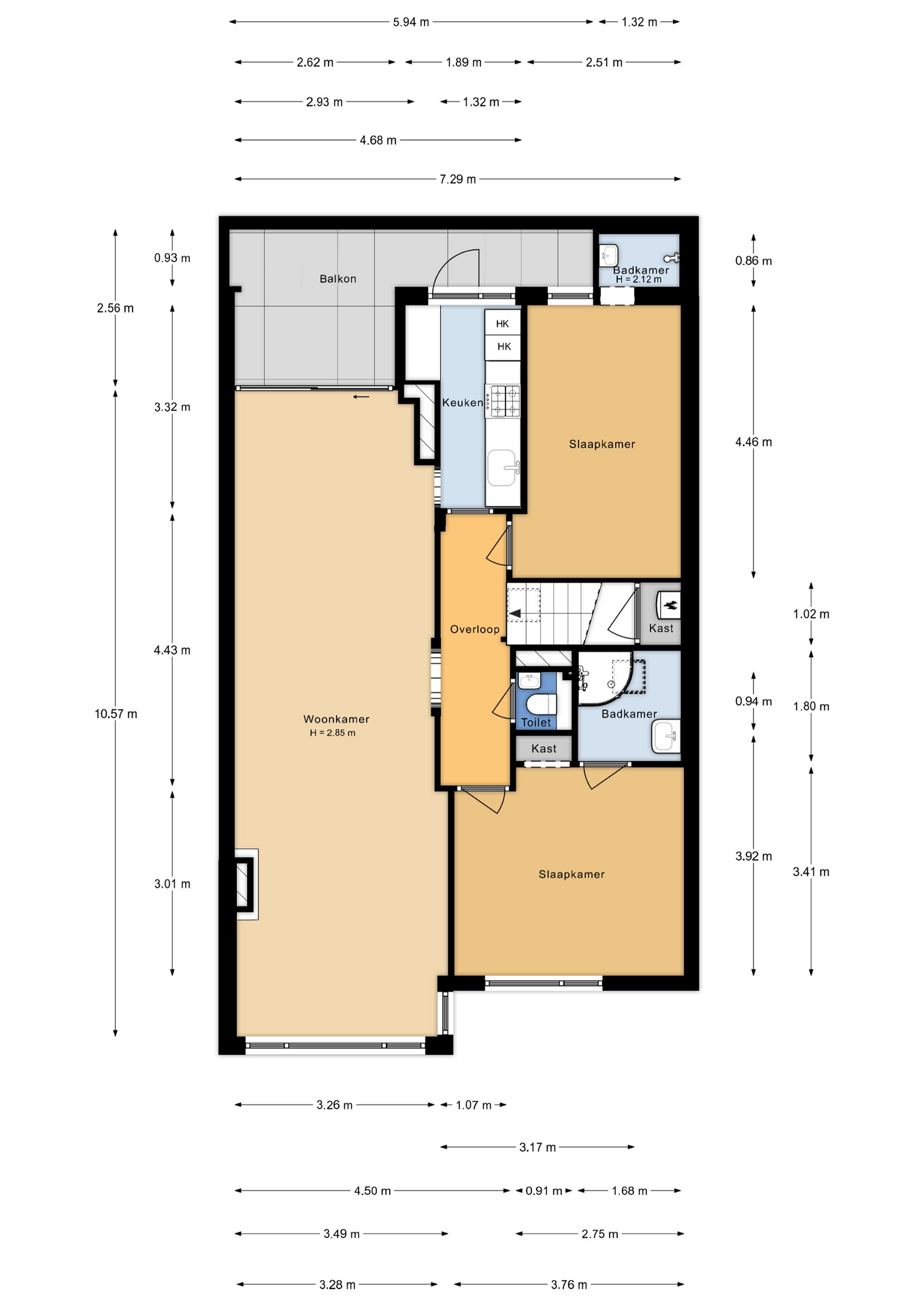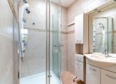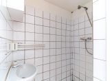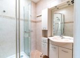 Traditional Hague entrance, apartment entrance, space under the stairs for a bicycle, coats, or pram, meter cupboard, stairs to the second floor with storage space. Spacious landing with skylight and convenient video intercom, separate floating toilet with hand basin. Large master bedroom at the front of the property with a practical built-in wardrobe and an en suite bathroom featuring a shower cabin, washbasin unit, and skylight. Expansive living room with sliding doors and uPVC double glazing leading to the delightful west-facing terrace. Semi-open kitchen with gas hob, fridge/freezer, oven, extractor hood, and access to the terrace. The second bedroom is accessible from the hallway, offering a private shower and washbasin, ingeniously installed in the former balcony cupboard.
