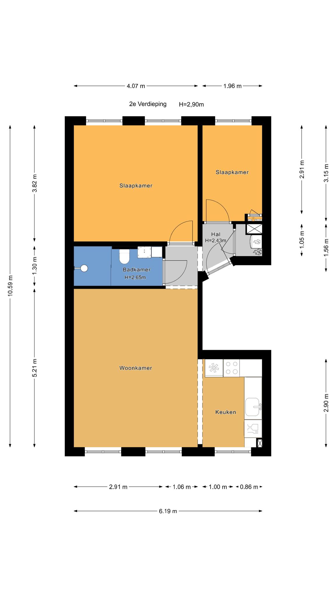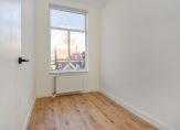 Gezamenlijke entree, trap naar de tweede etage, entree appartement, woonkamer met hoog plafonds, vrij uitzicht richting de Jacob van der Doesstraat en spectaculaire lichtinval dankzij grote raampartijen aan de voorzijde. De half open keuken is voorzien van inductiekookplaat, koel-/vriescombinatie, combioven en vaatwasser. Aan de achterzijde twee ruime slaapkamers met eveneens hoog plafond en tussengelegen badkamer voorzien van fraai tegelwerk, meubel met wastafel, toilet, handdoekradiator en inloopdouche met schuifdeur.