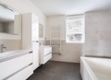 De slaapkamer is aan de voorzijde gelegen en ruim genoeg om een kingsize bed en een grote kastenwand te plaatsen. Vanuit de slaapkamer een schuifpui naar voorbalkon dat op de middag- en avondzon is gelegen. De tussengelegen luxe badkamer is eveneens ruim van formaat en beschikt over fraai tegelwerk, natuurlijk licht, ligbad, inloopdouche, dubbele wastafel en handdoekradiator.