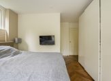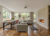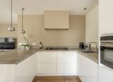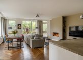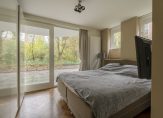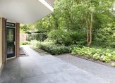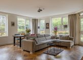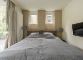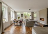Entree van het appartementengebouw met ingang op de begane grond, entree van het appartement, brede hal met technische ruimte, meterkast en toilet met fraai tegelwerk en fonteintje. Vanuit de hal de woonkamer aan de achterzijde die zeer vrij is gelegen, beschikt over 6 raampartijen, een sfeervolle gashaard, visgraat parketvloer en volledig grenst aan de fraai aangelegde achtertuin van ca. 155 m². De luxe open keuken in U-opstelling beschikt over Siemens combioven, Quooker, koel-/vriescombinatie, 5-pits gaskookplaat, inbouwverlichting en vaatwasser. De achtertuin is via een grote schuifpui ook vanuit de keuken te bereiken. De hoofdslaapkamer is rustig gelegen aan de achterzijde met een goede maatvoering, grote raampartijen en deur naar eigen badkamer voorzien van hoogwaardig tegelwerk, stijlvol badkamermeubel met wastafel, handdoekradiator, wandcloset en inloopdouche. De tweede slaapkamer is vernuftig ingedeeld met wastafel en eigen douche. De parkeerplaats en berging zijn in de onderbouw van dit complex gelegen.