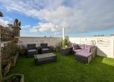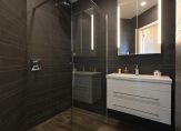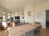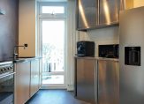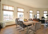 Vanuit de overloop de trap naar de tweede etage, zijkamer aan de voorzijde, overloop met daklicht en apart toilet, tweede woonkamer met wederom schitterende lichtinval die eventueel opgedeeld kan worden in twee slaapkamers en nog een riante slaapkamer aan de achterzijde. Op deze etage is eveneens een keuken gerealiseerd voorzien van groot rvs gasfornuis met brede oven, rvs afzuigkap en losse koel-/vriescombinatie. Verder op deze etage de tweede badkamer met inloopdouche, wastafel en hoogwaardig tegelwerk. Via het achterbalkon is het dakterras te bereiken met panoramisch vrij uitzicht over Scheveningen Dorp.
