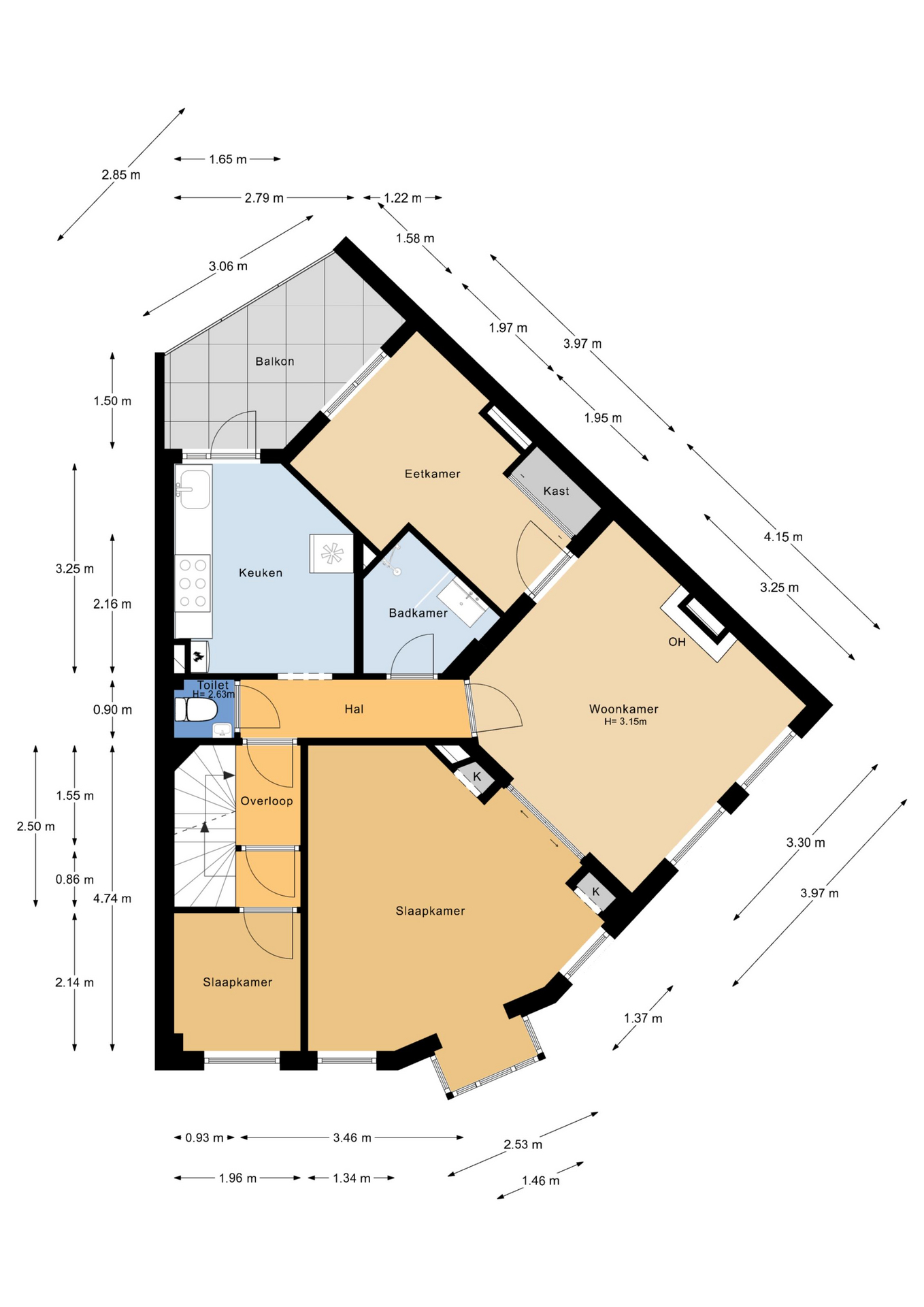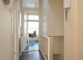 Eigen entree op straatniveau met meterkast, trap naar de 1e etage, overloop met toilet en zijkamer aan de voorzijde, schitterende kamers en suite met suite separatie, hoge ornamenten plafonds, schitterende lichtinval dankzij 5 grote raampartijen en erker met uniek uitzicht richting de Renbaanstraat, Katwijkstraat en Maaswijkstraat. In het verlengde van de kamers en suite nog een extra kamer die momenteel wordt gebruikt als eetkamer. Aan de achterzijde van deze etage de moderne keuken met groot rvs gasfornuis met brede oven, rvs afzuigkap en losse koel-/vriescombinatie. Op deze etage is ook een badkamer gerealiseerd die is voorzien van hoogwaardig tegelwerk, inloopdouche met glazen wand en badkamermeubel met wastafel.