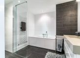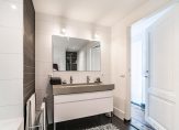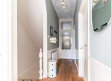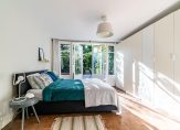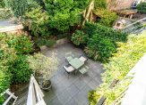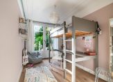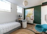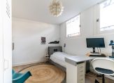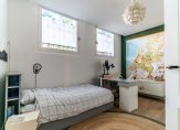 Vanuit de hal de trap naar het souterrain, gang met vaste kasten (inclusief wasmachineopstelplaats), ruime slaapkamer aan de voorzijde met grote raampartijen, hoge plafonds en niet ver onder het maaiveld gelegen. De riante hoofdslaapkamer is rustig gelegen aan de achterzijde van de woning en beschikt over openslaande deuren naar de achtertuin. De derde slaapkamer is eveneens aan de achterzijde en ruim van formaat. De tussengelegen badkamer is voorzien van hoogwaardig tegelwerk, ligbad, inloopdouche, handdoekradiator en dubbele wastafelmeubel.