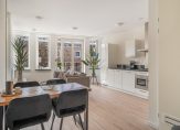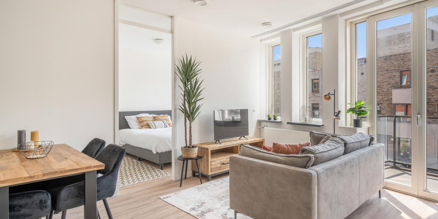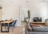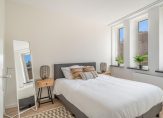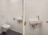 Entree van het complex met trap of lift naar de 1e etage, entree appartement, hal voorzien van toilet met fraai tegelwerk en wandcloset, stijlvolle living met fantastische lichtinval dankzij grote raampartijen, luxe open keuken voorzien van hoogwaardige inbouwapparatuur en ruime inpandige berging met opstelplaats voor de cv-ketel en balansventilatie. Vanuit de woonkamer openslaande deuren naar schitterend vrijhangend balkon met hoogwaardig afgewerkte glazen balustrade gelegen op het zonnige zuidwesten. Aan de voorzijde is een ruime slaapkamer gesitueerd eveneens met gunstige lichtinval dankzij de grote raampartijen.