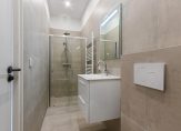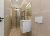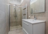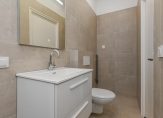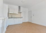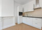 Gezamenlijk entree van het voormalig bovenhuis, trap naar de tweede etage, entree appartement, woonkamer met hoog plafond, visgraat vloer en karakteristieke glas in lood bovenlichten. De nieuwe luxe open keuken is voorzien van inductiekookplaat, koel-/vriescombinatie, whirlpool combioven, afzuigkap en vaatwasser. De slaapkamer is gelegen aan de voorzijde maar toch heel rustig dankzij het aangebrachte dubbel glas. De tussengelegen luxe badkamer is voorzien van fraai tegelwerk, inloopdouche met glazen deur, handdouche en regendouche, badkamermeubel met wastafel, handdoekradiator, spiegel met verlichting, toilet en wasmachineaansluiting.