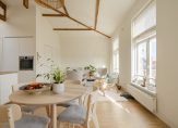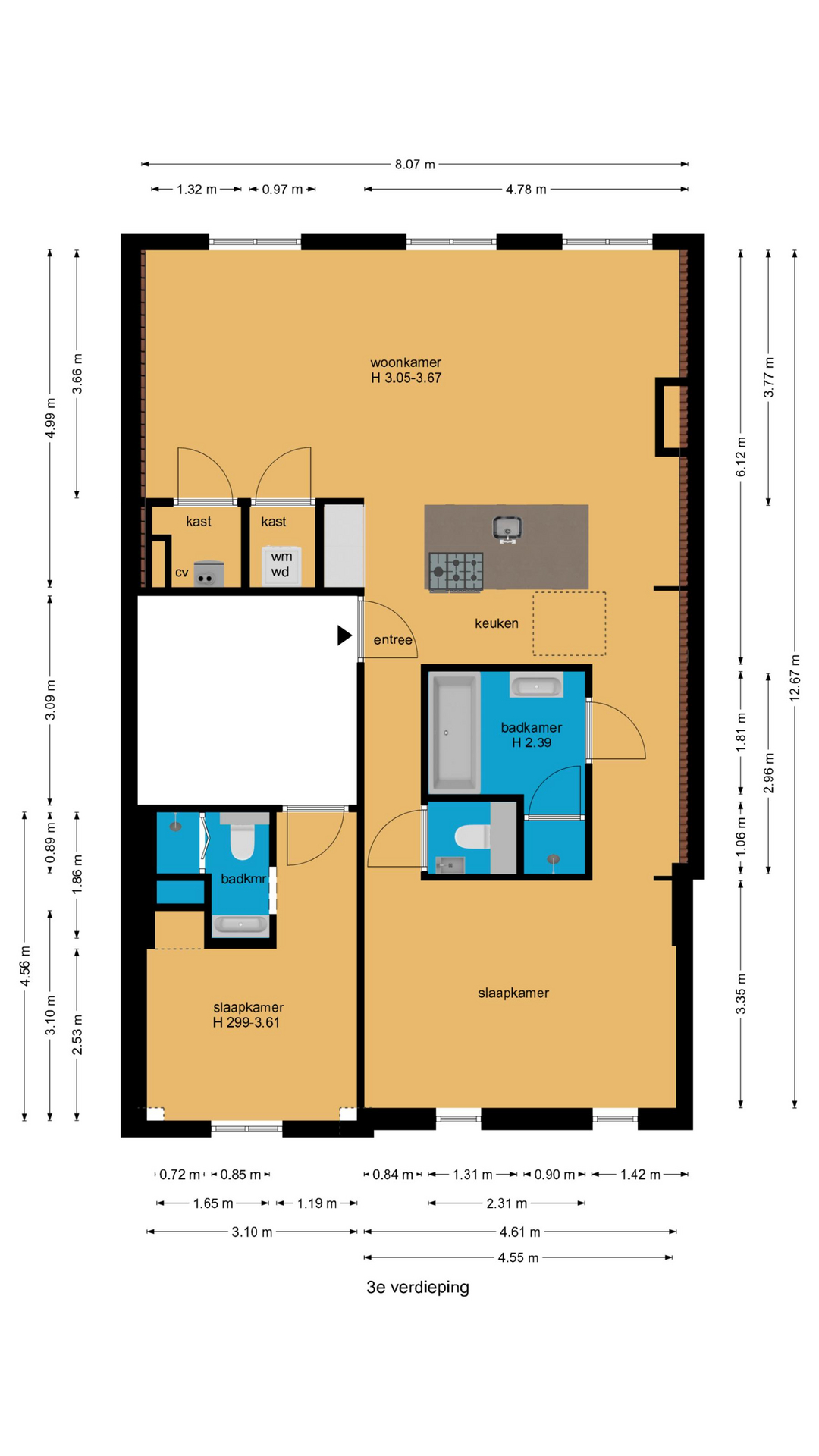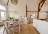 Entree op straatniveau, een fraai trappenhuis en ruime gangen brengen je naar de 3e etage, entree appartement met aan de zonnige achterzijde de woonkamer over de volle breedte van ruim 8 meter. De eilandkeuken is uitgerust met luxe inbouwapparatuur, waaronder een 5 pits gasfornuis, stille afzuigkap, vaatwasser, oven en een royale koel-vriescombinatie. Dankzij de brede opstelling en het zonnige uitzicht is dit een heerlijke plek om te koken en samen te zijn.
