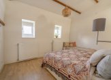 De tweede slaapkamer heeft een ingang via de centrale hal en beschikt over een stijlvolle en-suite badkamer met douche, toilet en wastafel. Ideaal als gastenverblijf of rustige werkruimte. Eventueel is een doorgang te realiseren.