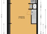 Entree op straatniveau, halletje, trap naar 1e etage, volledig doorgebroken ruime en lichte woonkamer, half open nette keuken, toilet, open trap naar 2e etage die momenteel bestaat uit een grote open ruimte met badgelegenheid, opstelplaats CV-ketel en wasmachineaansluiting. Hier zijn eventueel 2 kamers en een badkamer te realiseren.