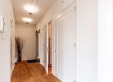 Entree te bereiken middels de gemeenschappelijke tuinen en het parkeerterrein van het complex, centrale entree met intercominstallatie met camera, brievenbussen en bellentableau, centrale hal met trappenhuis en liftinstallatie, 2e etage, centrale hal en gang, entree appartement volledig voorzien van massieve eikenhouten vloeren met brede delen, L- vormige gang, technische ruimte met WTW- installatie, opstelplaats wasmachine en droger en de nodige bergruimte, stook-cq bergruimte met Cv- combiketel en expansievat, meterkast met uitgebreide elektrische installatie en gasmeter.
