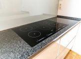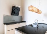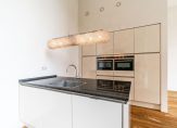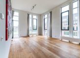 Grote en door de hoekligging met ramen rondom van vloer tot plafond zeer lichte living met een unieke plafondhoogte van ruim 4 meter, deur naar heerlijk zonneterras pal zuid West en open luxe “Siemens” keuken met spoeleiland met natuurstenen aanrecht, rvs spoelbak, vaatwasser en onderkasten aan beide zijden, 2e natuurstenen werkblad met 5 pits keramische kookplaat, design afzuigkap met verlichting en ondergelegen laden, wandopstelling met 2 “Siemens” rvs combi ovens, grote vriezer en aparte koelkast eveneens van “Siemens” alsmede boven- en onderkasten.